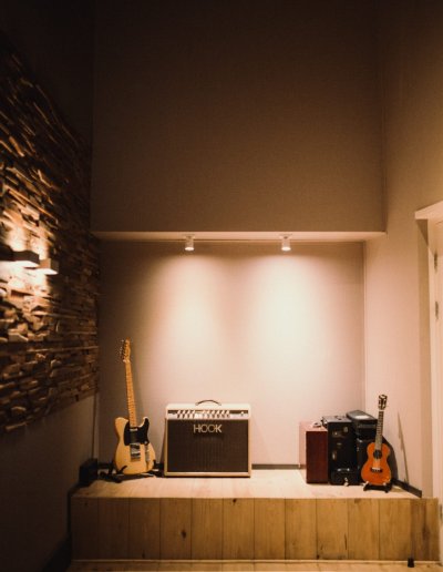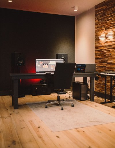 Studio B is verbonden met twee aparte opname ruimtes met een totale afmeting van ongeveer 60m2. De combinatie van beide ruimtes maakt het mogelijk verschillende instrumenten zonder overspraak tegelijkertijd op te nemen. De controle ruimte van studio B is verbonden met de opname ruimtes met behulp van een goedwerkend camara-systeem. Net als in Studio A hebben beide ruimtes een indrukwekkende hoogte van ongeveer 4 meter. In een van de ruimtes is een ingenieus beweegbaar plafond gebouwd dat met behulp van lieren omhoog en naar beneden getakeld kan worden. Met dit beweegbare plafond is het mogelijk om met groot detail de akoestiek van de ruimte te manipuleren.